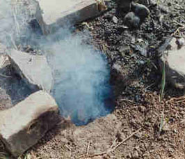 ![]() Next dig a hole about 12 inches in diameter and 18 inches deep (a post hole digger works great for this). Build a fire in the hole and let it burn down to coals, now put the punky wood on the coals and have some water handy to put out any flames that break out. All you want is smoke and not heat because high heat will damage the fur. |