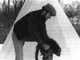 When the pelt is dry and no longer cool to the touch, it’s ready to be smoked in the teepee. The skin can be hung at the top and rotten wood placed on the fire to smolder and smoke. At the campfire the pelt can be suspended on sticks downwind but out of reach from a possible wild flame. Remember you want smoke not fire. Moths like tanned pelts of any kind. but smoking deters them allowing you to enjoy them year round.