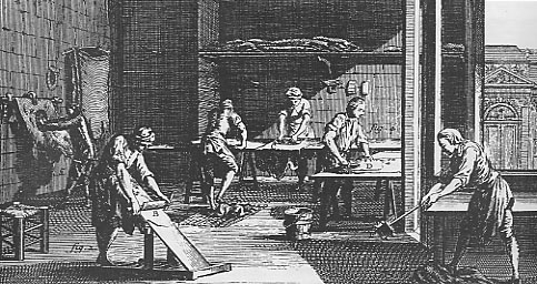 Highly developed bark ‘tanneries’ were common in ancient Greece, Rome and Egypt. The earliest known example of vegetable tanning comes from Gebelein Egypt, a tannery thought to be over 5000 years old. Bark tanned leathers were an important tool in the development of civilization, providing an immensely strong and durable material that was pliable; a very unique and useful combination. Bark tanning continued to be an important and basic trade throughout Europe, North Africa, the Middle East and India until the late 1800’s when cheap modern chemical chrome tanning methods came into widespread use for softer grain leathers, and rubbers and plastics started to replace denser leather for many uses. Unlike brain tanning, which wasn’t efficient to mechanize, bark tanning was mechanized from a very early date. The need for large quantities of bark to be crushed, and dozens of vats for the long soaks encouraged this.