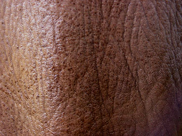 The fuller the hide becomes, the thicker and less stretchy it gets. These are good qualities for saddles, belts and shoe soles, but may not be as desirable for other uses. Full-tanned hides are also easier to carve designs into the surface of. Contrary to this, one source says that thick hides used for sole-leather are sometimes left with an un-tanned stripe in the center which makes it more water tight and harder. This is also sometimes done for knife-sheaths.