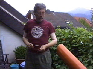 Everybody needs a break from scraping so why not have an espresso with Georg Barth, author of Native American Beadwork, on the balcony of his third floor condo in Kirchzarten, Germany (a small town near Freiburg in the Black Forest region). Notice the beautiful color of his PVC beam and its height in relationship to his chest. He (and others) says this makes for very comfortable scraping without needing to stoop as much.
