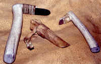 Traditional elk antlered dry-scrapers made by Chris Hanson. The one on the far right has a flint blade.