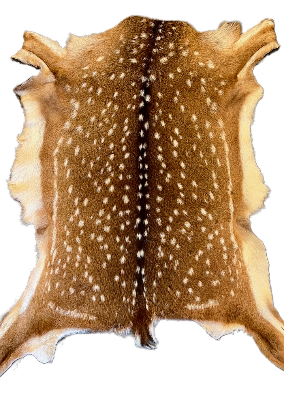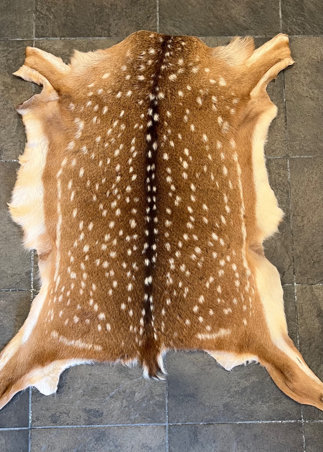 Axis deer hides add a stunning beauty to your life whilst be oh so practical. Their hair is very durable and doesn’t collect debris making them practical for a wide variety of uses: