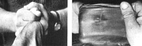 The length of the tanning time is determined by cutting off a piece of the hide. Tanned leather has an even brown color in cross-section; untanned is white, almost bluish. The difference in color is more visible if you moisten the edges of the section. The inner, lighter stripe is weakly tanned if at all. The fiber is matted, glistening, and doesn’t absorb the saliva when moistened. On a thin skin, it can be difficult to see the difference in color, and if you can then fold the skin double two times and press the folded area between your fingers, when the skin is unfolded the places where the fold was should appear as light dry lines……