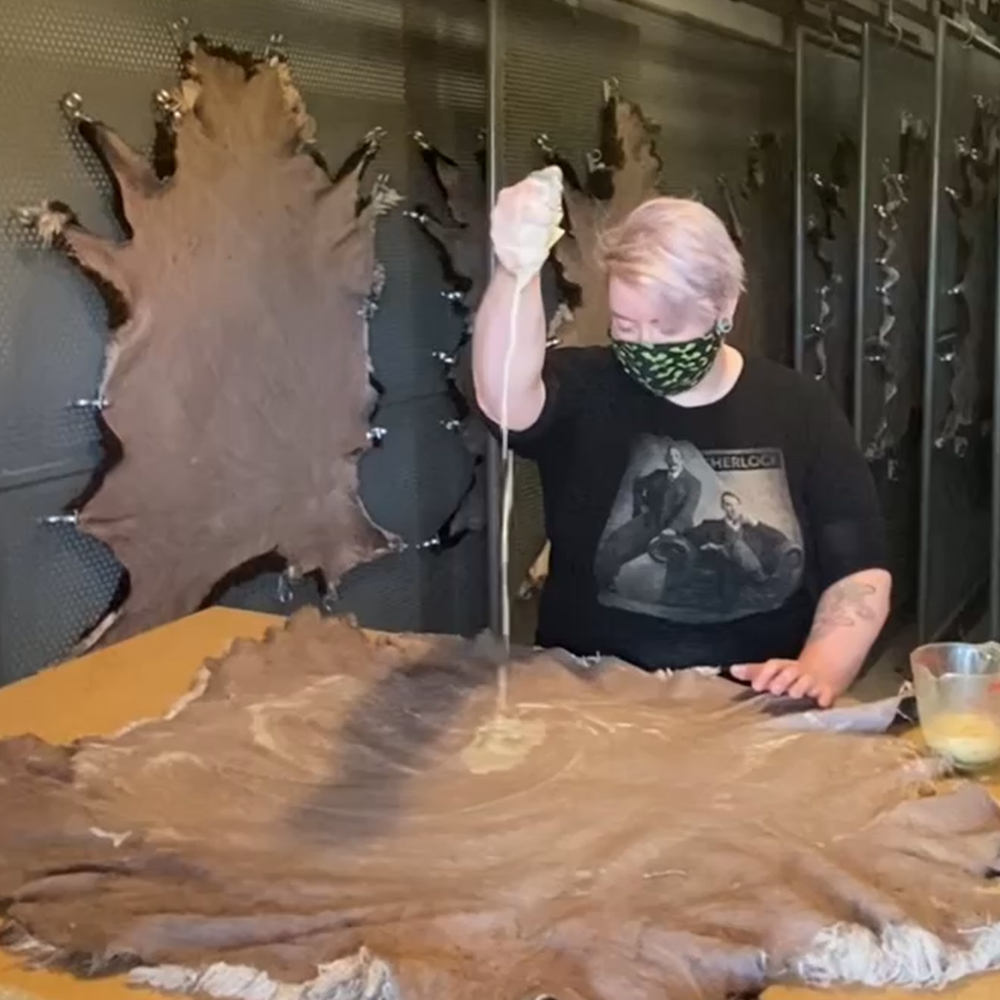 We hand apply a natural oil emulsion to the skin side of the hide.