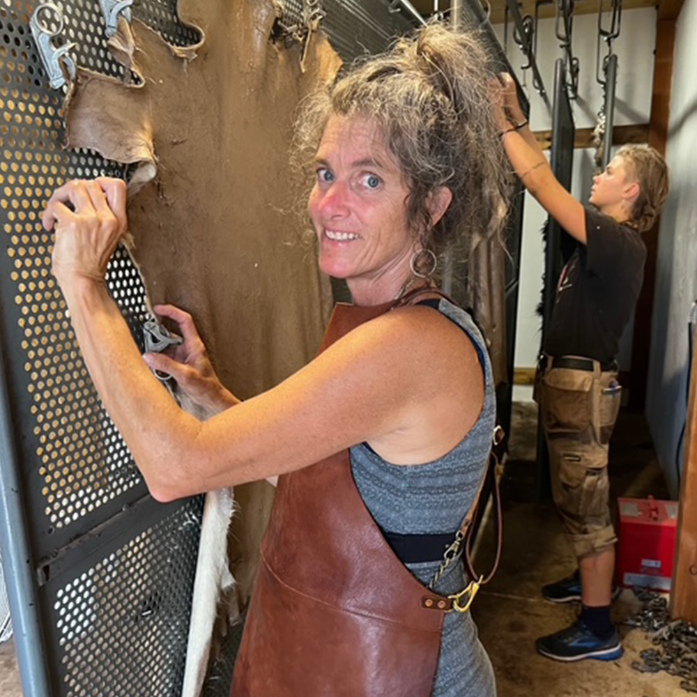Unlike virtually any other tannery, we’ll tell you exactly how we tan sheepskins and goat hides, as well as every ingredient used. In fact, we’ll gladly teach you how to tan just like we do in our monthly zoom classes — it’s quite satisfying. Other tanneries will tell you that they are natural and sustainable, but won’t disclose all of their ingredients. Read about how to identify tanning truth from fiction on our FAQs page.